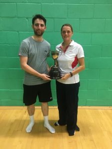 There were 11 pairs in the mixed doubles which were split into three boxes. Many of the matches went to three and the final, between Ben Vranjkovic and Natalie Barton and Conor Bambrick and Kelly Matthews, was no different. Eventually Ben and Natalie ran out winners 17-21 21-16 21-16 to give Ben his first Restricted title after numerous appearances in finals.