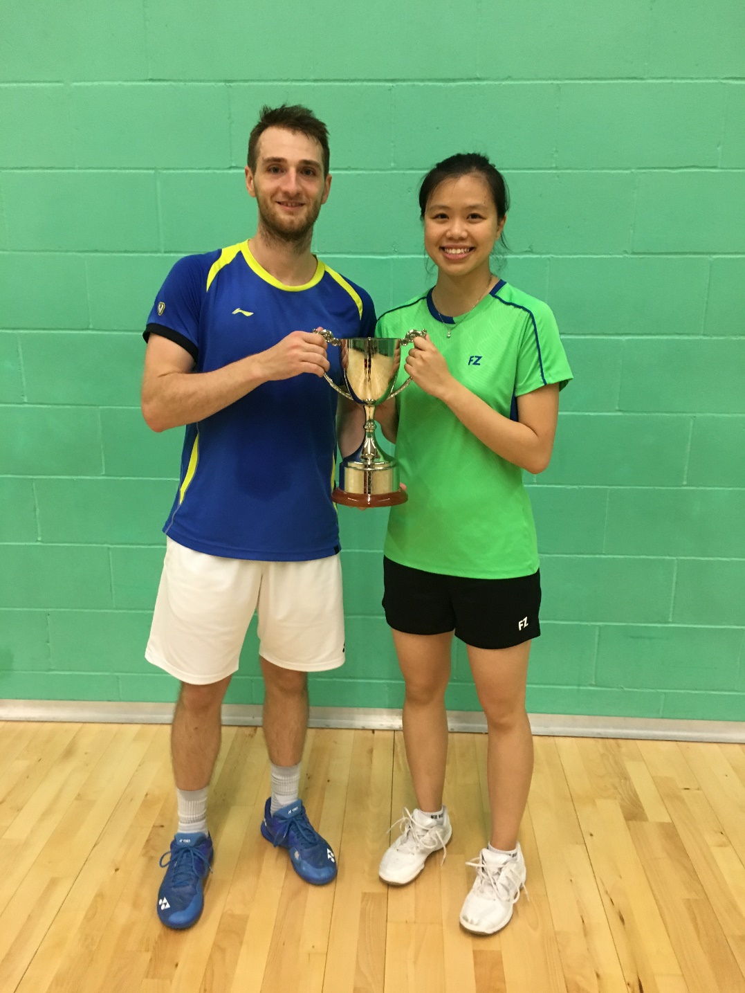 The mens’ and ladies’ singles were played on the Saturday. In the mens’ singles Ollie Baczala (Hants) met Angus Pedersen (Middlesex) met in the final with Ollie winning 21-11 21-19 The ladies singles final was between Freya Patel-Redfearn (Middlesex) and Li Lian Yang (Notts) with Li Lian winning 21-15 21-16.